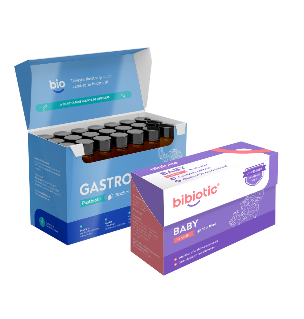 În timp ce Bibiotic® Gastro susține funcția digestivă și sănătatea intestinală la copiii peste 3 ani și adulți, Bibiotic® Baby oferă îngrijire delicată și sigură celor mici încă din primele zile după naștere.