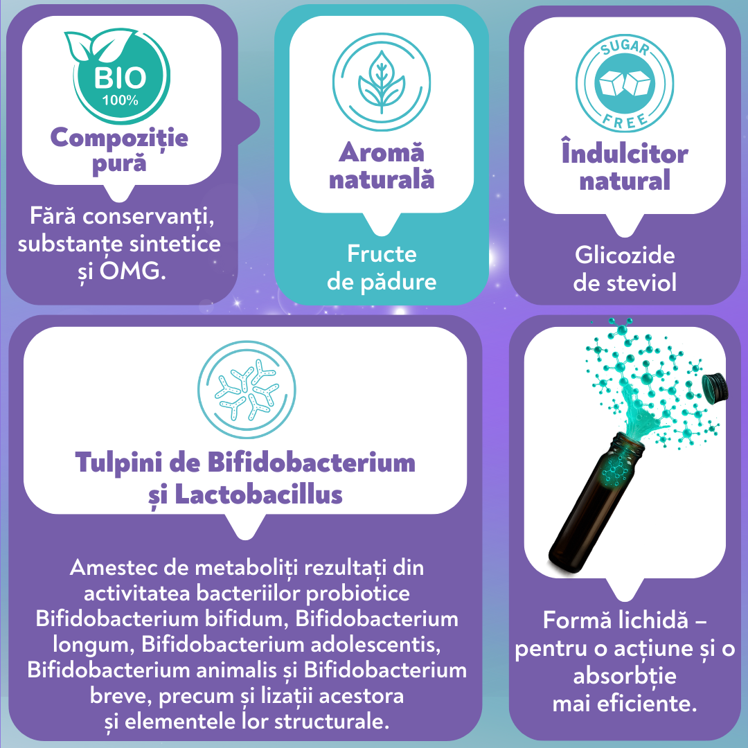 Bibiotic® pentru copii și adulți începe să acționeze după 1 oră și furnizează cantitatea necesară de metaboliți