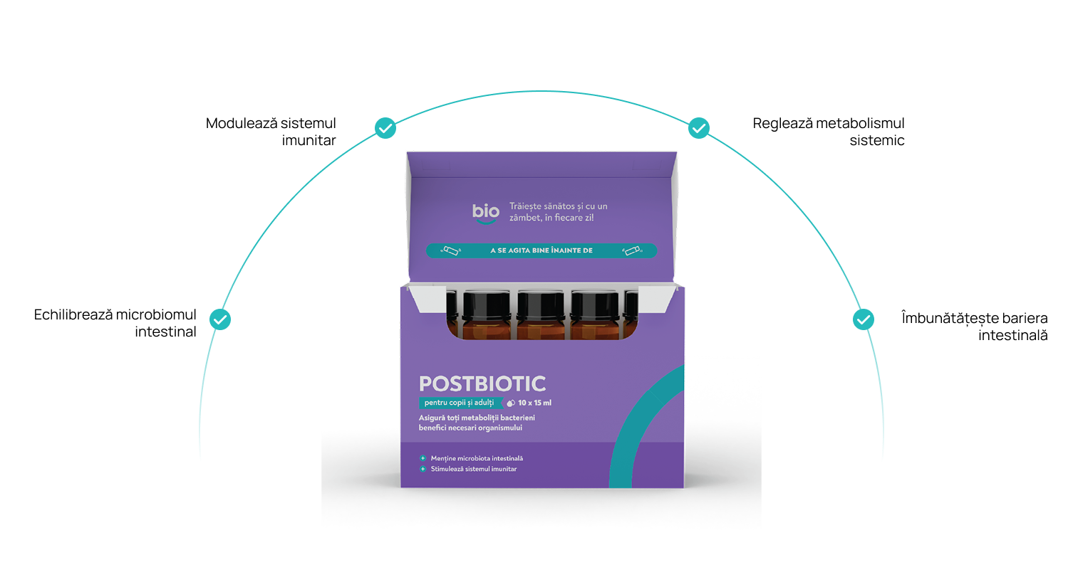 Postbioticul face parte dintr-o nouă clasă de produse probiotice – și mai utile și mult mai eficiente decât prebioticele, probioticele și sinbioticele. Aceste postbiotice au toate avantajele probioticelor, dar niciunul dintre dezavantajele acestora. Dimpotrivă, acestea acționează mai rapid, mai direct și mai eficient în beneficiul sănătății noastre.